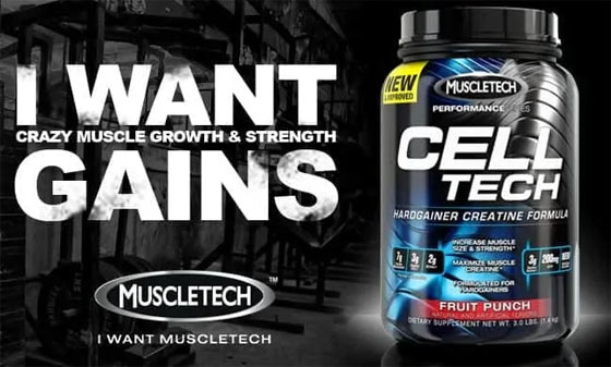 Cell-Tech de Muscletech, une créatine enrichie en acides aminés et glucides.